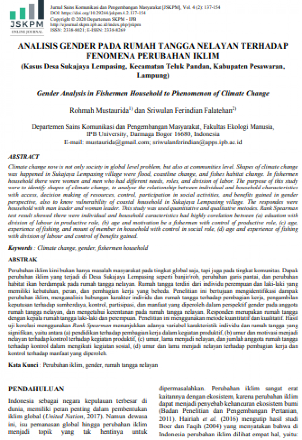 | Judul | : | Analisis Gender pada Rumah Tangga Nelayan terhadap Fenomena Perubahan Iklim |